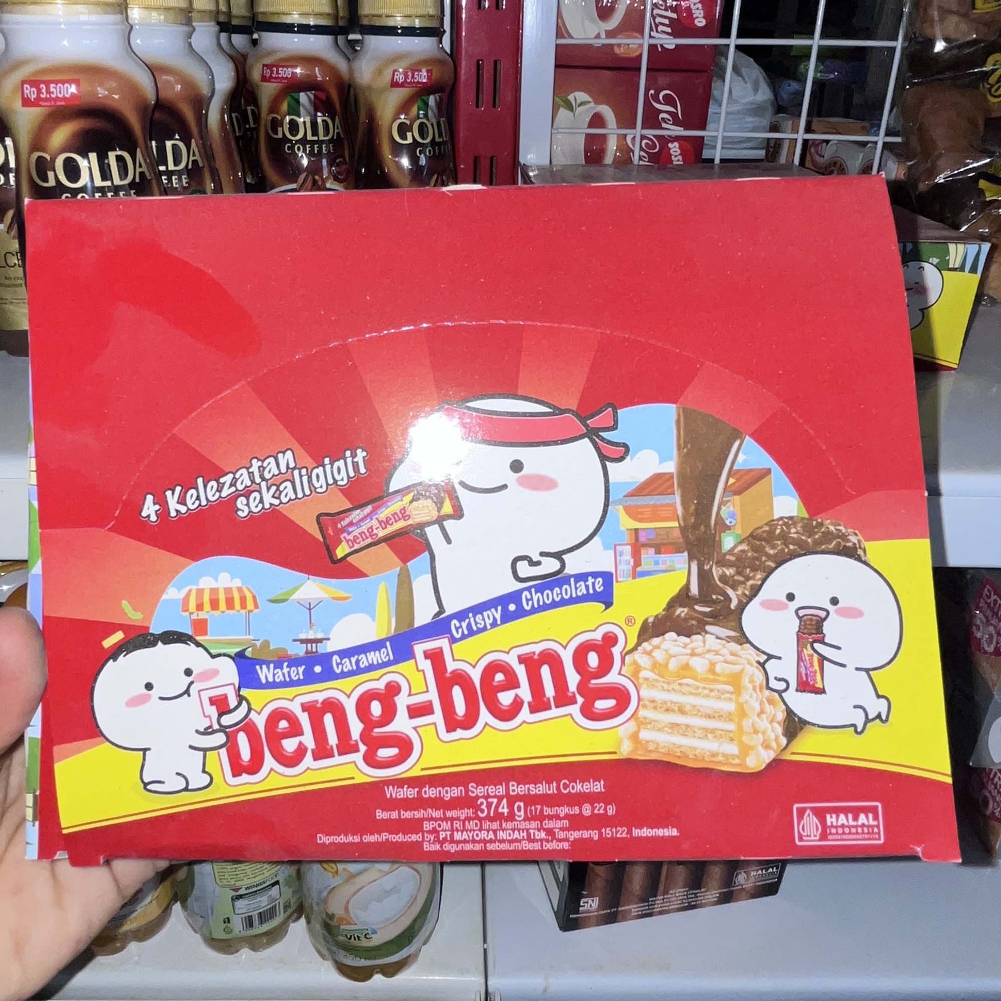 Camilan cokelat legendaris dari Beng-Beng produksi Mayora Indah. Perpaduan wafer renyah, karamel manis, crispy, dan cokelat dalam satu gigitan bikin rasanya khas dan nagih.