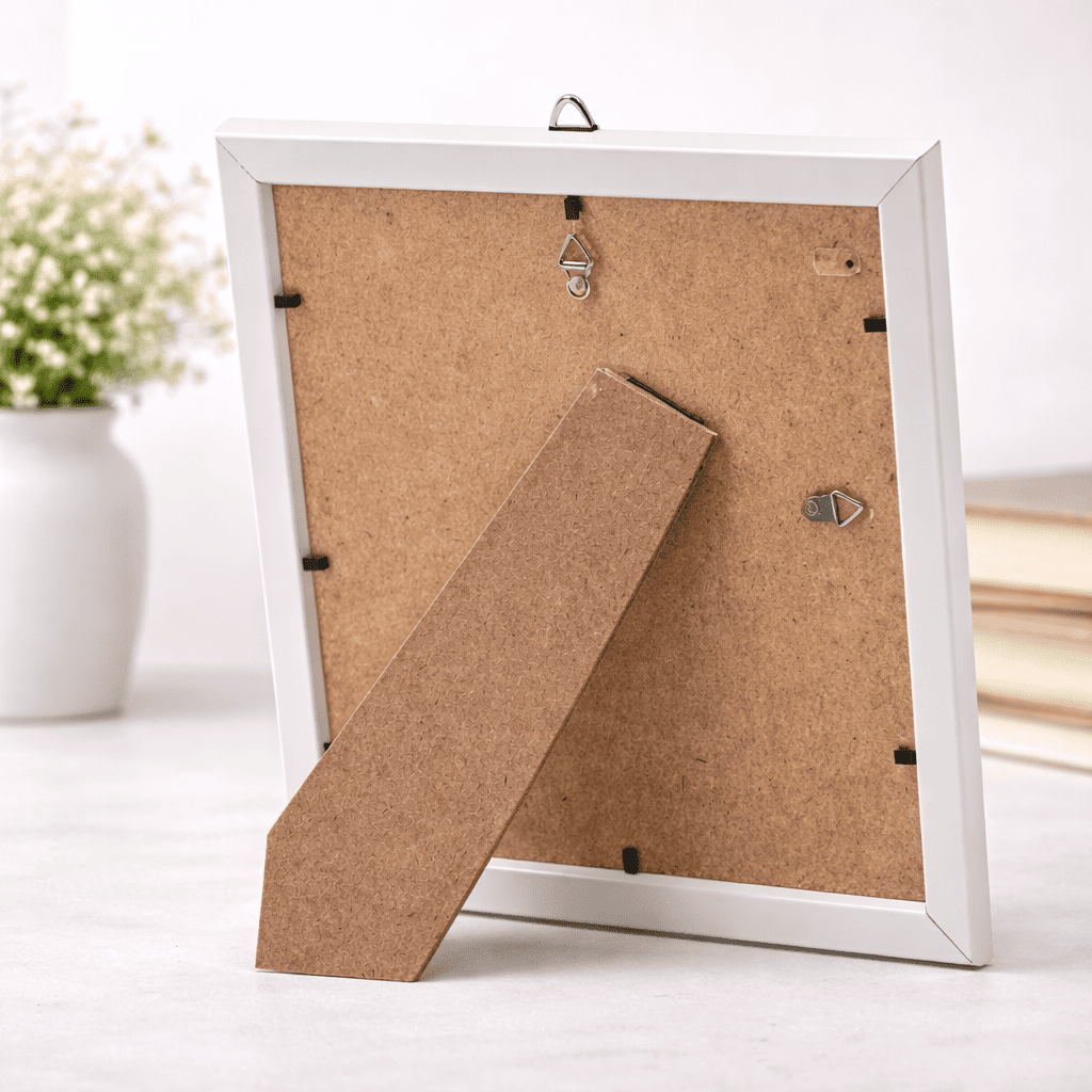 Bingkai foto elegan dengan desain simpel dan warna putih bersih, cocok untuk mempercantik tampilan rumah, ruang tamu, kamar, kantor, maupun hadiah spesial. Bisa dipajang di meja atau digantung di dinding.